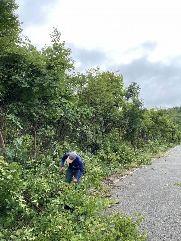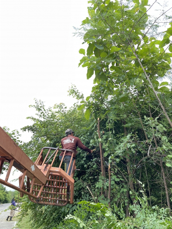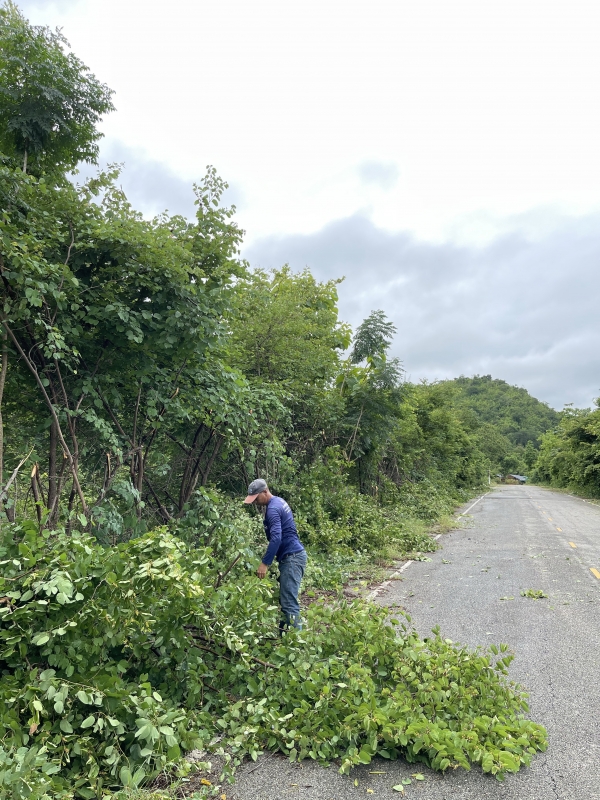งานกองช่างออกดำเนินตัดต้นไม้ กิ่งไม้ สองข้างทางที่ยื่นล้ำออกมาบนถนนสาธารณะ