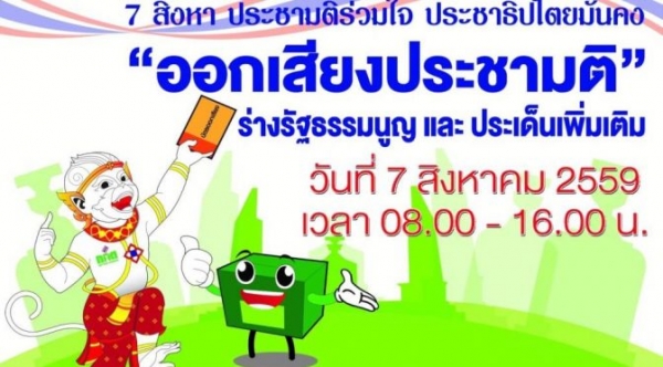 วันอาทิตย์ที่ 7 สิงหาคมนี้ เวลา 08.00 น. - 16.00 น. เทศบาลตำบลน้ำตกไทรโยค ขอเชิญชวนออกไปใช้สิทธิ ในการออกเสียงประชามติร่างรัฐธรรมนูญ โดยในพื้นที่เขตเทศบาล มี 3 หน่วยในการใช้ออกเสียง 1. ศาลาการเปรียญวัดน้ำตก ( บ้านเลขที่ 1 ถึงบ้านเลขที่ 127/3 ) 2.โรงอาหารโรงเรียนอนุบาลไทรโยค (บ้านเลขที่ 128 ถึงบ้านเลขที่ 312) 3. ศาลาการเปรียญวัดเกาะเจริญสุขาราม (บ้านเลขที่ 313 ถึงบ้านเลขที่ 9809/4) นำหนึ่งเสียงในมือท่าน ร่วมสร้างสรรค์ประเทศไทย อย่าลืมนะคะท่านใดที่มีสิทธิออกเสียงไปใช้สิทธิกันนะคะ...