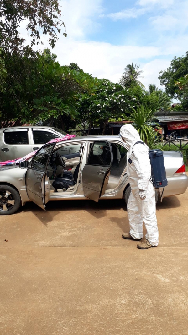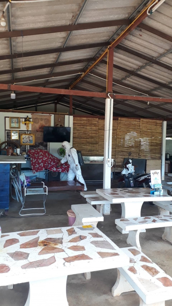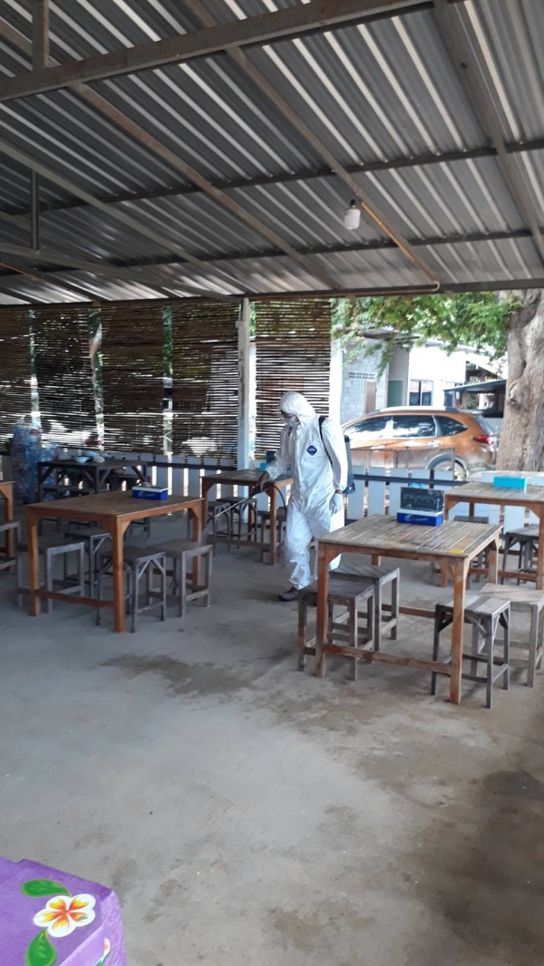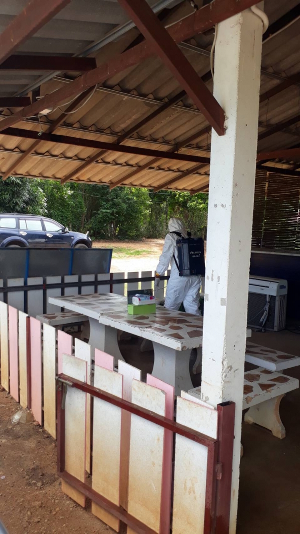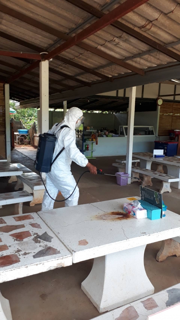 ฉีดพ่นยาฆ่าเชื้อ บริเวณพื้นที่เสี่ยงเพื่อเป็นการเฝ้าระวัง ควบคุมการแพร่ระบาดของโรคติดเชื้อ covid -19