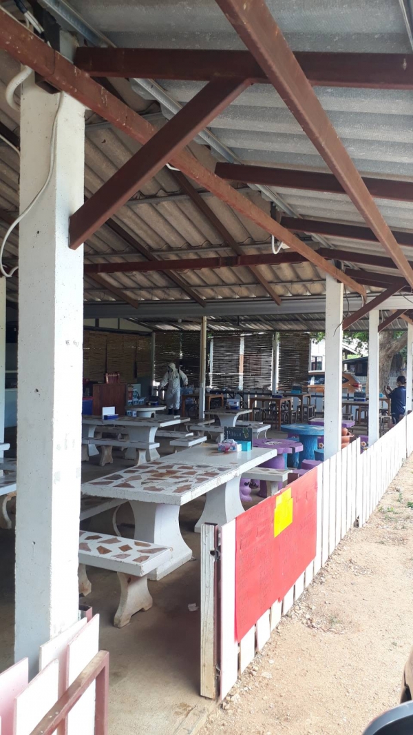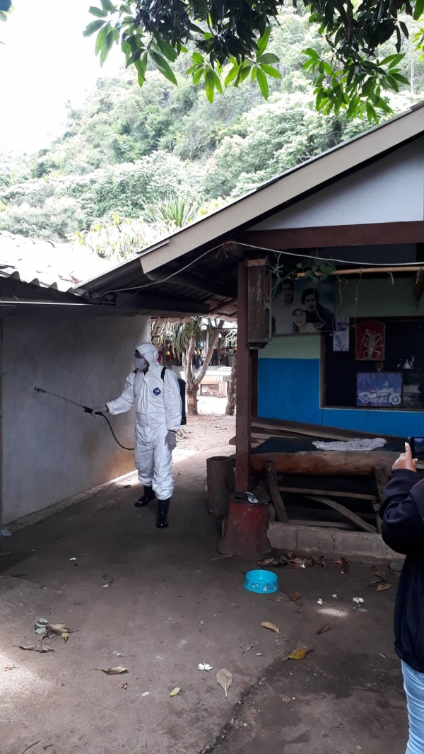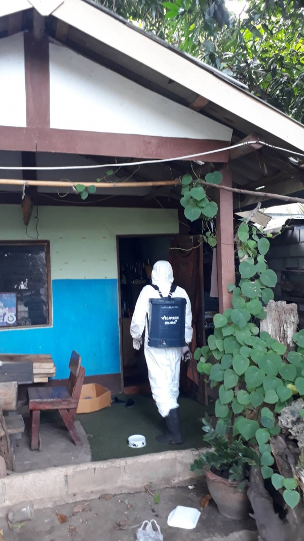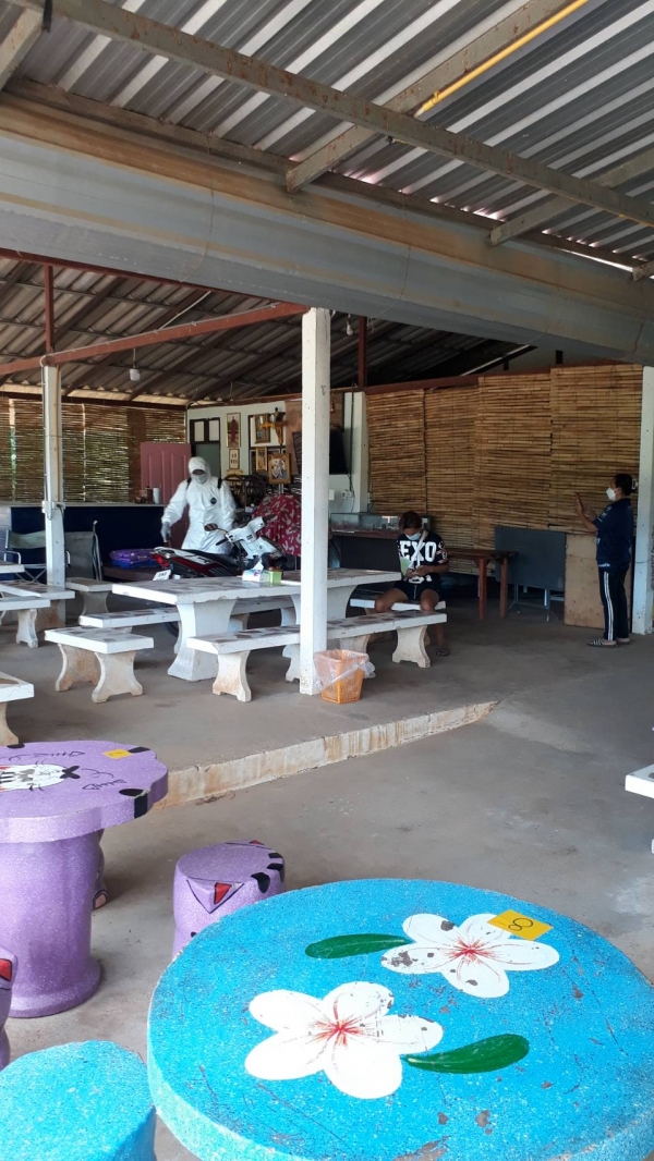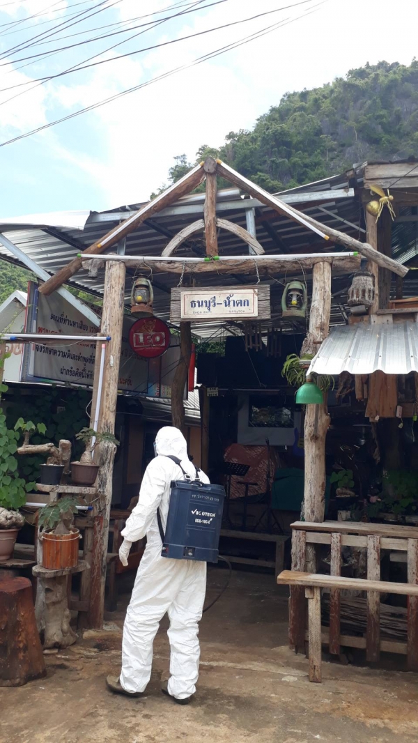 ฉีดพ่นยาฆ่าเชื้อ บริเวณพื้นที่เสี่ยงเพื่อเป็นการเฝ้าระวัง ควบคุมการแพร่ระบาดของโรคติดเชื้อ covid -19