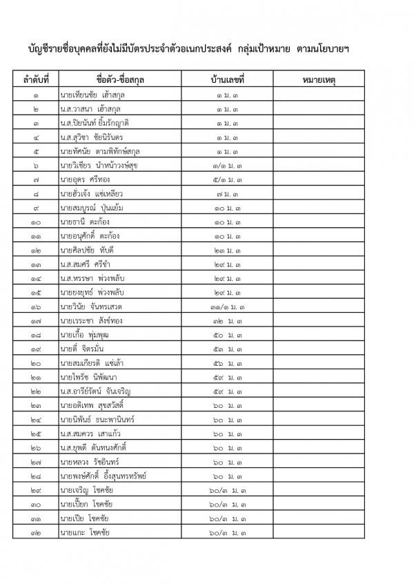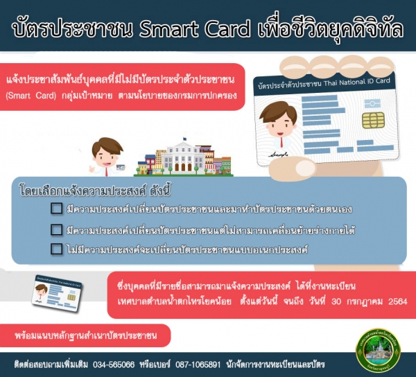 แจ้งประชาสัมพันธ์บุคคลที่ไม่มีบัตรประจำตัวประชาชน (Smart Card) ซึ่งเป็นกลุ่มเป้าหมาย ตามรายชื่อที่กรมการปกครองแจ้งมา