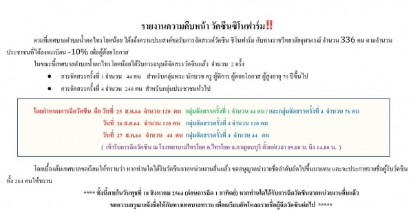 รายงานความคืบหน้าวัคซีนซิโนฟาร์ม การจัดสรรครั้งที่ 1 และครั้งที่ 4