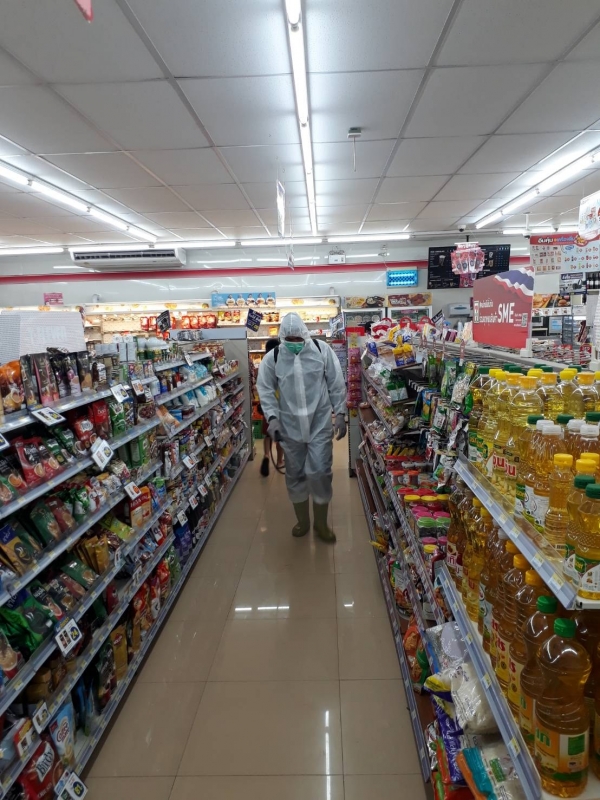 การฉีดพ่นยาฆ่าเชื้อเพื่อควบคุมป้องกันเชื้อไวรัส COVID-19