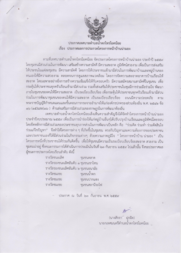 ประกาศผลการประกวดโครงการหน้าบ้านหน้ามอง