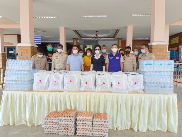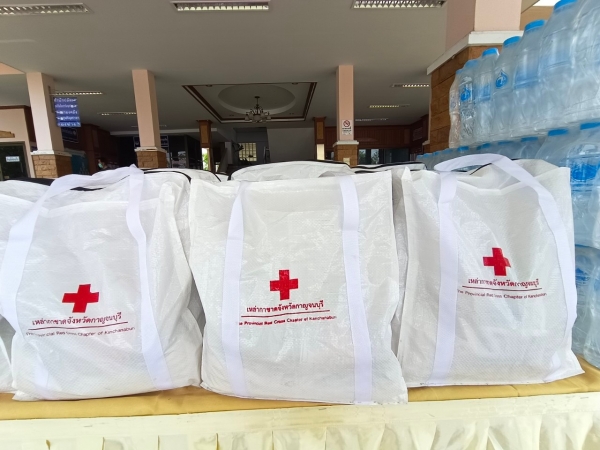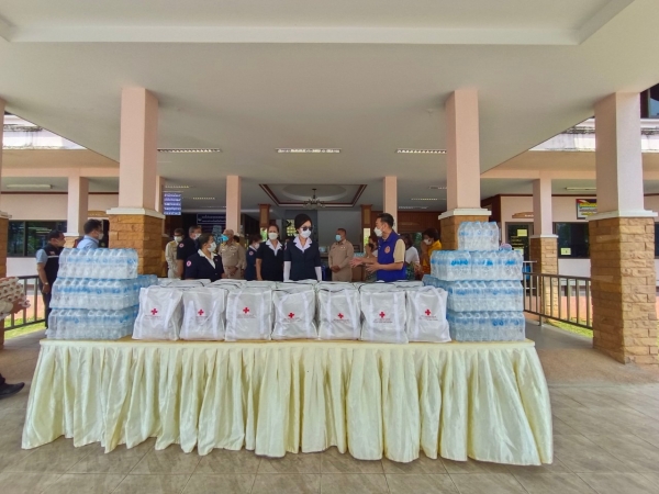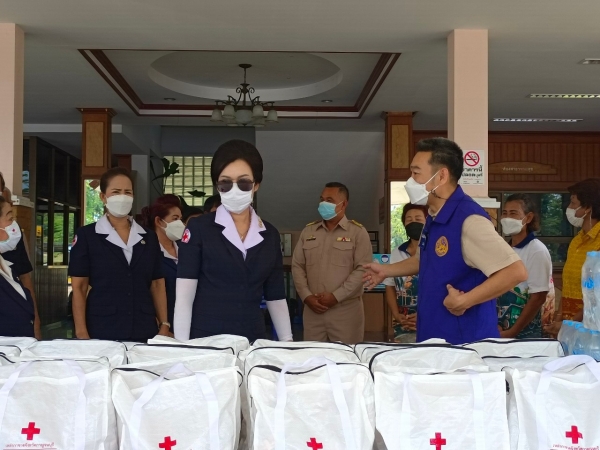 นางรชยา ภูมิสวัสดิ์ นายกเหล่ากาชาดจังหวัดกาญจนบุรีพร้อมคณะ ได้เดินทางมามอบสิ่งของยังชีพ
