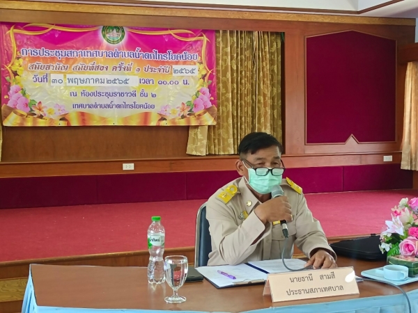 วันที่ 30 พฤษภาคม 2565 เวลา 10.00 น. ณ ห้องประชุมราชาวดี ชั้น 2 โดยมี นายธานี สามสี ประธานสภาเทศบาลน้ำตกไทรโยคน้อย เป็นประธานในการประชุมสภาเทศบาล สมัยสามัญ สมัยที่สอง ครั้งที่ 1 ประจำปี พ.ศ. 2565
