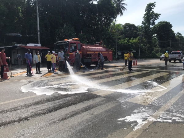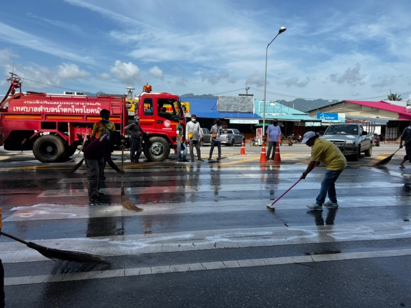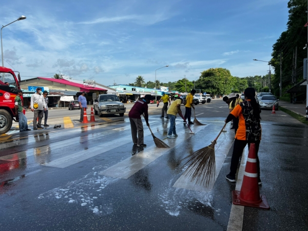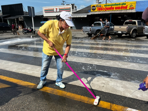 ลงพื้นที่ทำความสะอาดฉีดล้างทางม้าลาย
