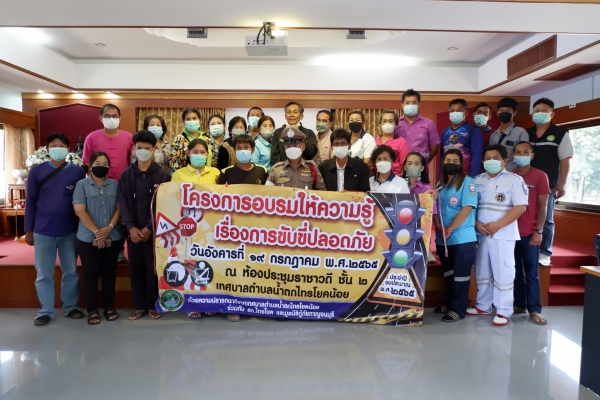 วันที่ 19 กรกฎาคม 2565 เวลา 09.00 น. นายวิเชียร รอดทับทิม รองนายกเทศมนตรีตำบลน้ำตกไทรโยคน้อย เป็นประธานเปิดโครงการอบรมให้ความรู้เรื่องการขับขี่ปลอดภัย ประจำปี 2565 เพื่อเสริมสร้างจิตสำนึกในด้านความปลอดภัยและวินัยจราจรรวมถึงการป้องกันและลดอุบัติเหตุที่อาจจะเกิดขึ้นบนท้องถนน โดยมีวิทยากรจากสถานีตำรวจภูธรไทรโยคและเจ้าหน้าที่มูลนิธิกู้ภัยกาญจนบุรี มาให้ความรู้แก่ตัวแทนชุมชนทั้ง 6 ชุมชน ณ ห้องประชุมราชาวดี ชั้น 2