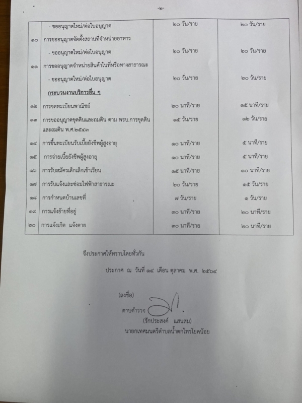 การลดขั้นตอนระยะเวลาการปฏิบัติราชการเพื่อประชาชนภารกิจของเทศบาลตำบลน้ำตกไทรโยคน้อย