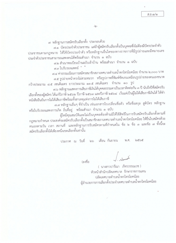 ประกาศผู้อำนวยการเลือกตั้งประจำเทศบาลตำบลน้ำตกไทรโยคน้อย