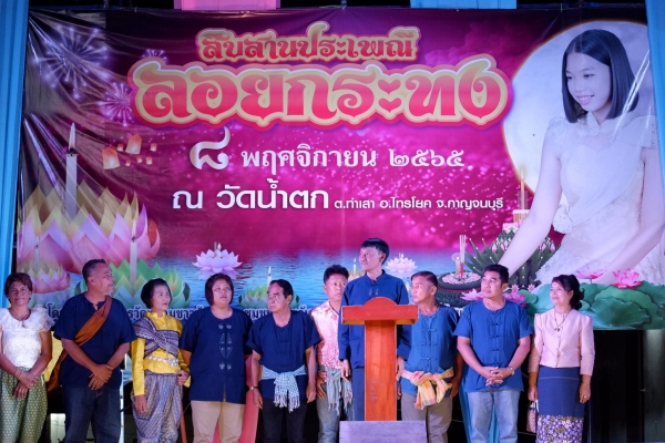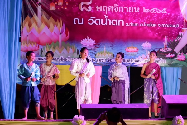 เมื่อวันที่ 8 พฤศจิกายน 2565 เทศบาลตำบลน้ำตกไทรโยคน้อย ร่วมกับคณะกรรมการวัดน้ำตก โรงเรียน และชุมชนทั้ง 6 ชุมชน จัดกิจกรรมวันลอยกระทง ประจำปี 2565 ณ วัดน้ำตก อำเภอไทรโยค จังหวัดกาญจนบุรี เพื่อเป็นการอนุรักษ์ฟื้นฟู สนับสนุน ส่งเสริม และสืบสานประเพณีของไทย