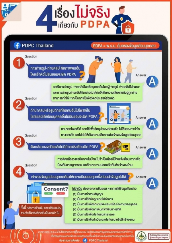 รู้กฎหมาย เรื่อง การคุ้มครองข้อมูลส่วนบุคคล พ.ร.บ.คุ้มครองข้อมูลส่วนบุคคล พ.ศ.2562 หรือกฎหมาย PDPA (Personal Data Protection Act) ที่เริ่มบังคับใช้เต็มรูปแบบเมื่อวันที่ 1 มิถุนายน 2565 ยังมีข้อมูลบางส่วนที่ผู้ที่เกี่ยวข้องอาจมีข้อสงสัยเกี่ยวกับ PDPA เพื่อไขข้อข้องใจและสร้างความเข้าใจที่ถูกต้อง ดังนี้