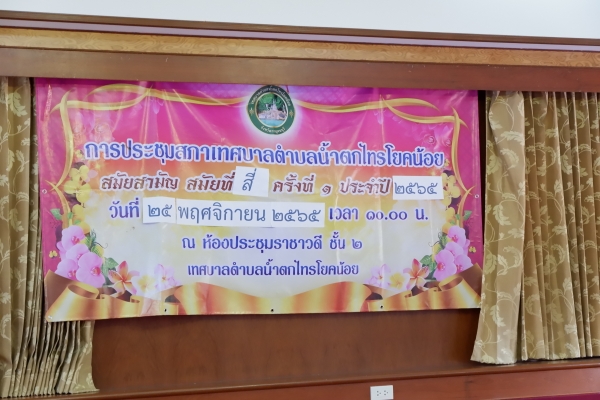 25 พฤศจิกายน 2565 เวลา 10.00 น. นายธานี สามสี ประธานสภาเทศบาลน้ำตกไทรโยคน้อย เป็นประธานในการประชุมสภาเทศบาล สมัยสามัญ สมัยที่สี่ ครั้งที่ 1 ประจำปี พ.ศ. 2565 ณ ห้องประชุมราชาวดี ชั้น 2 สำนักงานเทศบาลตำบลน้ำตกไทรโยคน้อย