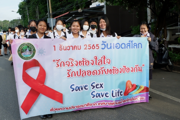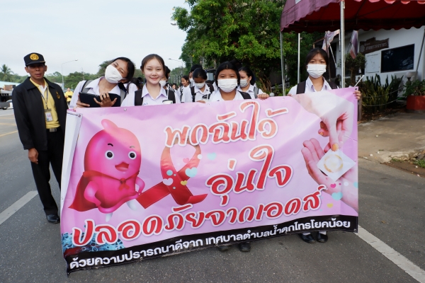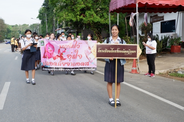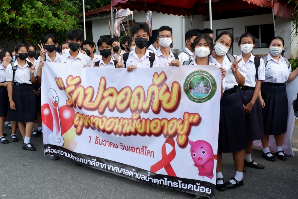 วันพฤหัสบดี ที่ 1 ธันวาคม 2565 งานสาธารณสุข เทศบาลตำบลน้ำตกไทรโยคน้อย ร่วมกับ โรงเรียนไทรโยคน้อยวิทยา โรงพยาบาลส่งเสริมสุขภาพตำบลบ้านท่าเสา กลุ่ม อสม. ป้อมสายตรวจท่าเสา มูลนิธิกู้ภัยกาญจนบุรี ร่วมเดินรณรงค์ “ในโครงการควบคุมและป้องกันโรคเอดส์ ประจำปีงบประมาณ 2566 “ พร้อมทั้งยังมีการให้ความรู้ ความเข้าใจเกี่ยวกับการป้องกันโรคติดต่อทางเพศสัมพันธ์และการติดเชื้อเอชไอวี ณ หอประชุมโรงเรียนไทรโยคน้อยวิทยา