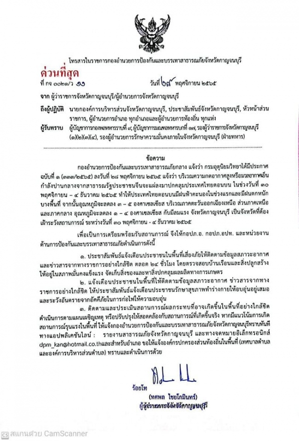 ประกาศแจ้งเตือนจาก กรมอุตุนิยมวิทยา