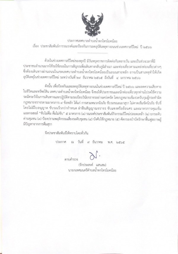 ประชาสัมพันธ์การรณรงค์และป้องกันการลดอุบัติเหตุทางถนนช่วงเทศกาลปีใหม่ ปี พ.ศ. ๒๕๖๖