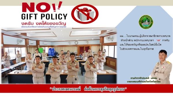 วันที่ 9 กุมภาพันธ์ 2566 เวลา 10.00 น. ดาบตำรวจรักประสงค์ แสมสม นายกเทศมนตรีตำบลน้ำตกไทรโยคน้อย ได้จัดประชุมให้ความรู้และความเข้าใจ พร้อมทั้งประกาศนโยบายให้ผู้บริหาร สมาชิกสภาทุกคนไม่รับของขวัญและของกำนัลทุกชนิดจากการปฏิบัติหน้าที่ (นโยบาย No Gift Policy) ทุกวาระเทศกาลและโอกาสพิเศษต่างๆ เพื่อเป็นการขับเคลื่อนแผนการปฏิรูปประเทศ สร้างความโปร่งใสในหน่วยงาน สร้างค่านิยมในการปฏิบัติหน้าที่และพึงปฏิบัติให้เป็นวัฒนธรรมสุจริตของเทศบาลตำบลน้ำตกไทรโยคน้อย