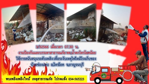 ให้การสนับสนุนรถดับเพลิง เพื่อระงับเหตุไฟไหม้โรงเก็บของ