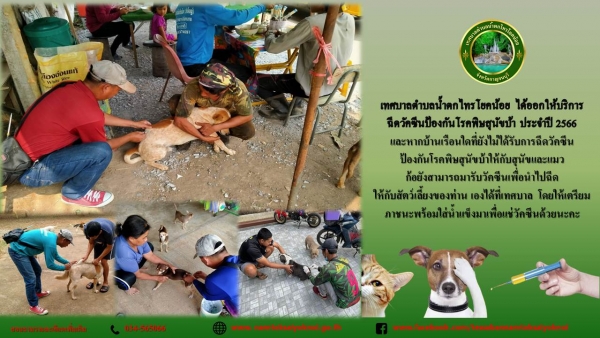 เทศบาลตำบลน้ำตกไทรโยคน้อย ได้ออกให้บริการฉีดวัคซีนป้องกันโรคพิษสุนัขบ้าและแมว ตามโครงการ"สัตว์ปลอดโรค คนปลอดภัย จากโรคพิษสุนัขบ้า ประจำปีงบประมาณ พ.ศ. 2566 " ในเขตเทศบาลตำบลน้ำตกไทรโยคน้อย
