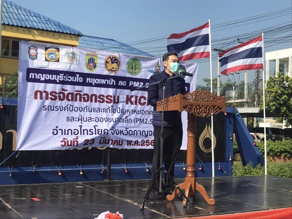 วันที่ 23 มีนาคม 2566 เวลา 09.00 น. ดาบตำรวจรักประสงค์ แสนสม นายกเทศมนตรีตำบลน้ำตกไทรโยคน้อย มอบหมายให้ นายวิเชียร รอดทับทิม พร้อมสมาชิกสภาเทศบาล ข้าราชการ พนักงานจ้าง และ อปพร. เข้าร่วมกิจกรรม kick off รณรงค์ป้องกันและแก้ไขปัญหาหมอกควัน และฝุ่นละอองขนาดเล็ก PM2.5 ณ หน้าที่ว่าการอำเภอไทรโยค มีหน่วยงานที่เกี่ยวข้องและองค์กรปกครองส่วนท้องถิ่นร่วมกิจกรรมดังกล่าวฯ โดยมีนายเนรมิต เหลืองอร่ามฟ้า นายอำเภอไทรโยค เป็นประธานจัดกิจกรรม