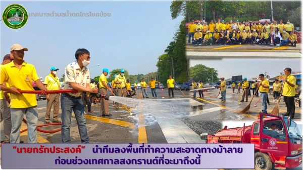 เมื่อวันที่ 10 เม.ย. 2566 ดาบตำรวจรักประสงค์ แสนสม นายกเทศมนตรีตำบลน้ำตกไทรโยคน้อย พร้อมด้วยคณะผู้บริหาร หัวหน้าส่วนราชการ,พนักงานเทศบาล,จิตอาสา ร่วมกันทำความสะอาดทางม้าลายกันอย่างพร้อมเพรียง เพื่อเพื่อให้ผู้ใช้เส้นทางจราจรสามารถมองเห็นสัญลักษณ์บนพื้นผิวจราจรได้ชัดเจนมากยิ่งขึ้น ซึ่งจะทำให้สามารถลดการเกิดอุบัติเหตุทางถนนได้เป็นอย่างดี เนื่องในช่วง 7 วันอันตรายสงกรานต์ ระหว่างวันที่ 11-17 เมษายน 2566 ณ บริเวณหน้าน้ำตกไทรโยคน้อย