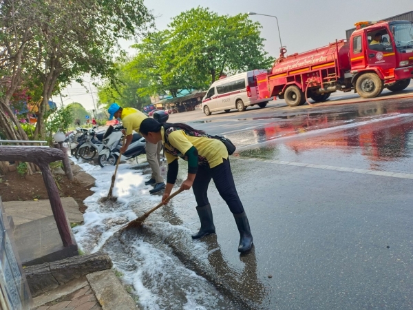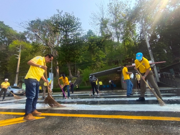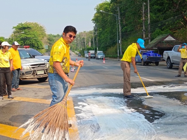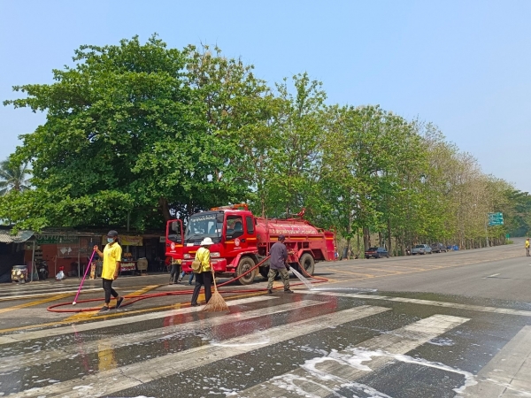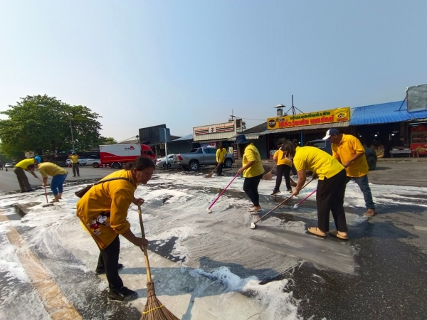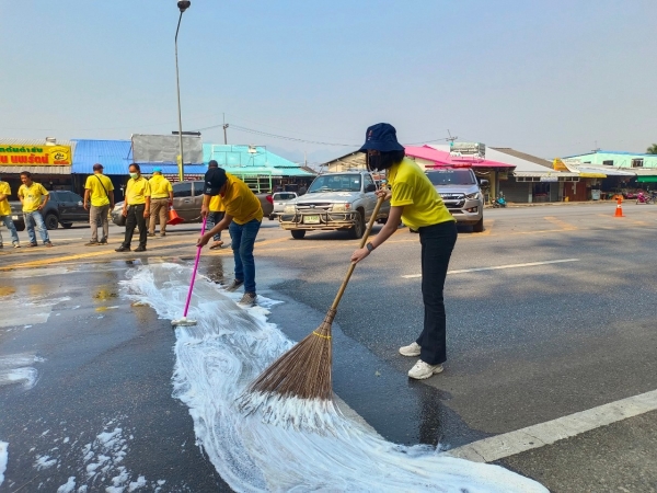 ร่วมกันทำล้างความสะอาดทางม้าลายในช่วง 7 วันอันตรายเทศกาลสงกราต์