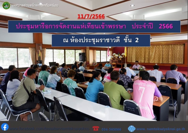 เมื่อวันที่ 11 กรกฎาคม 2566 เวลา 10.00 น. ดาบตำรวจรักประสงค์ แสนสม นายกเทศมนตรีตำบลน้ำตกไทรโยคน้อย ร่วมประชุมหารือคณะผู้บริหาร คณะกรรมการชุมชน จัดงาน ”โครงการสืบสาน ประเพณีแห่เทียนเข้าพรรษา" ประจำปี 2566 " โดยกำหนดจัดงาน วันที่ 27 กรกฎาคม 66