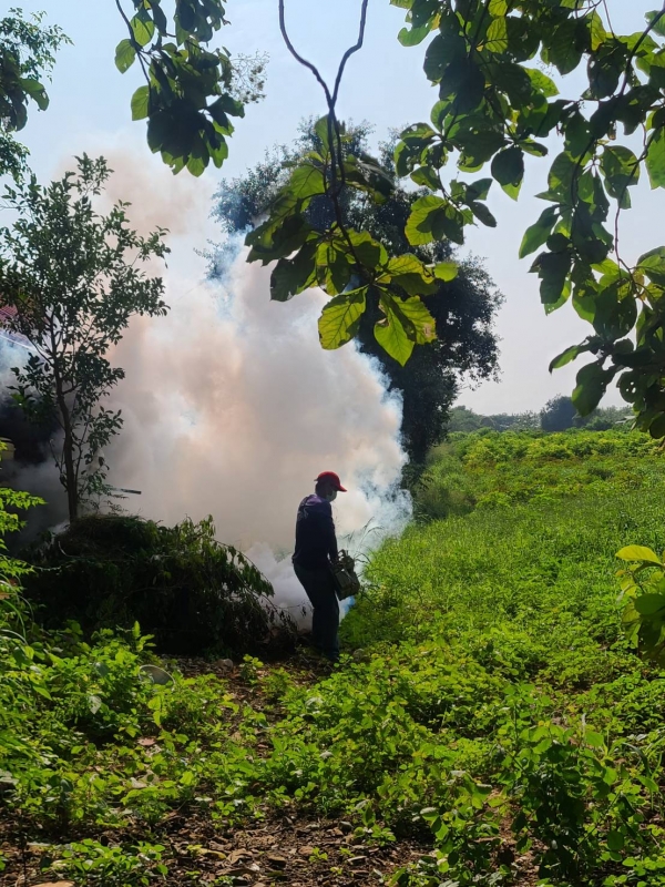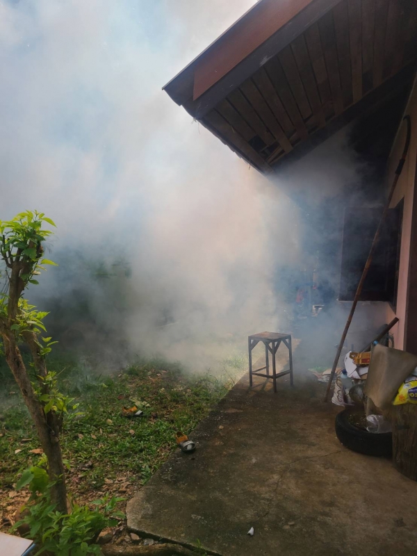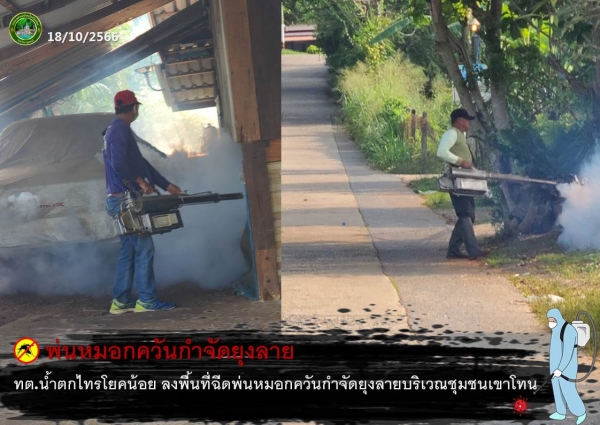ลงพื้นที่ฉีดพ่นหมอกควันกำจัดยุงลายบริเวณชุมชนเขาโทน