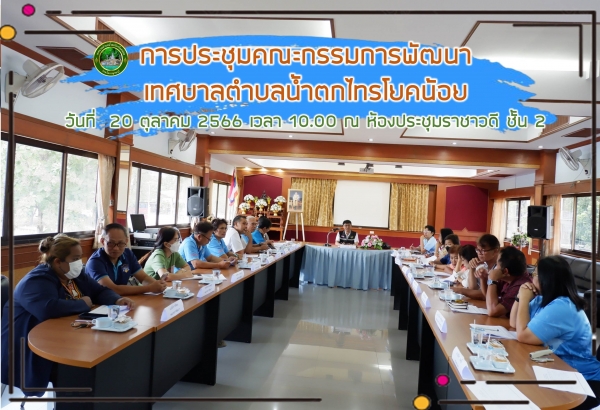 ในวันศุกร์ ที่ 20 ตุลาคม 2566 เวลา 10.00 น. ดาบตำรวจรักประสงค์ แสนสม นายกเทศมนตรีตำบลน้ำตกไทรโยคน้อย เป็นประธานในการประชุมคณะกรรมการพัฒนาเทศบาลตำบลน้ำตกไทรโยคน้อย ประจำปีงบประมาณ 2567 ณ ห้องประชุมราชาวดี ชั้น 2 สำนักงานเทศบาลตำบลน้ำตกไทรโยคน้อย