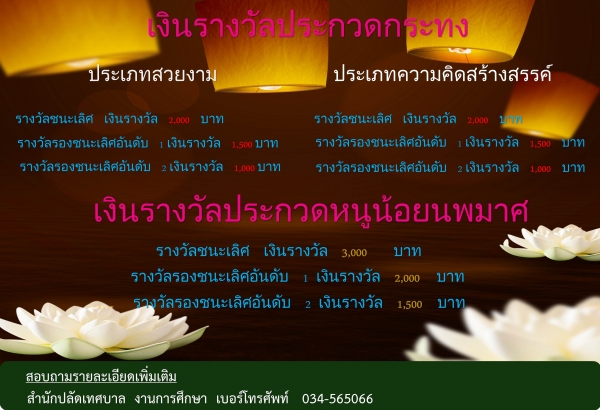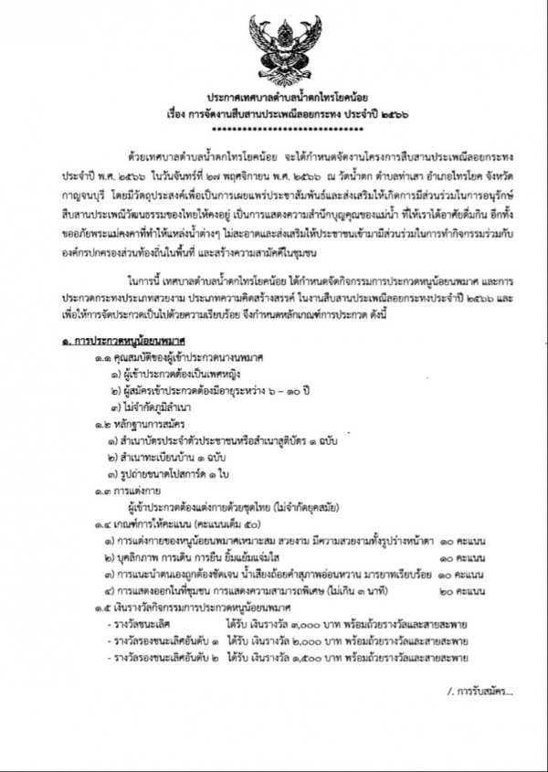 ขอเชิญผู้ที่สนใจร่วม ประกวดหนูน้อยนพมาศ และการประกวดกระทง