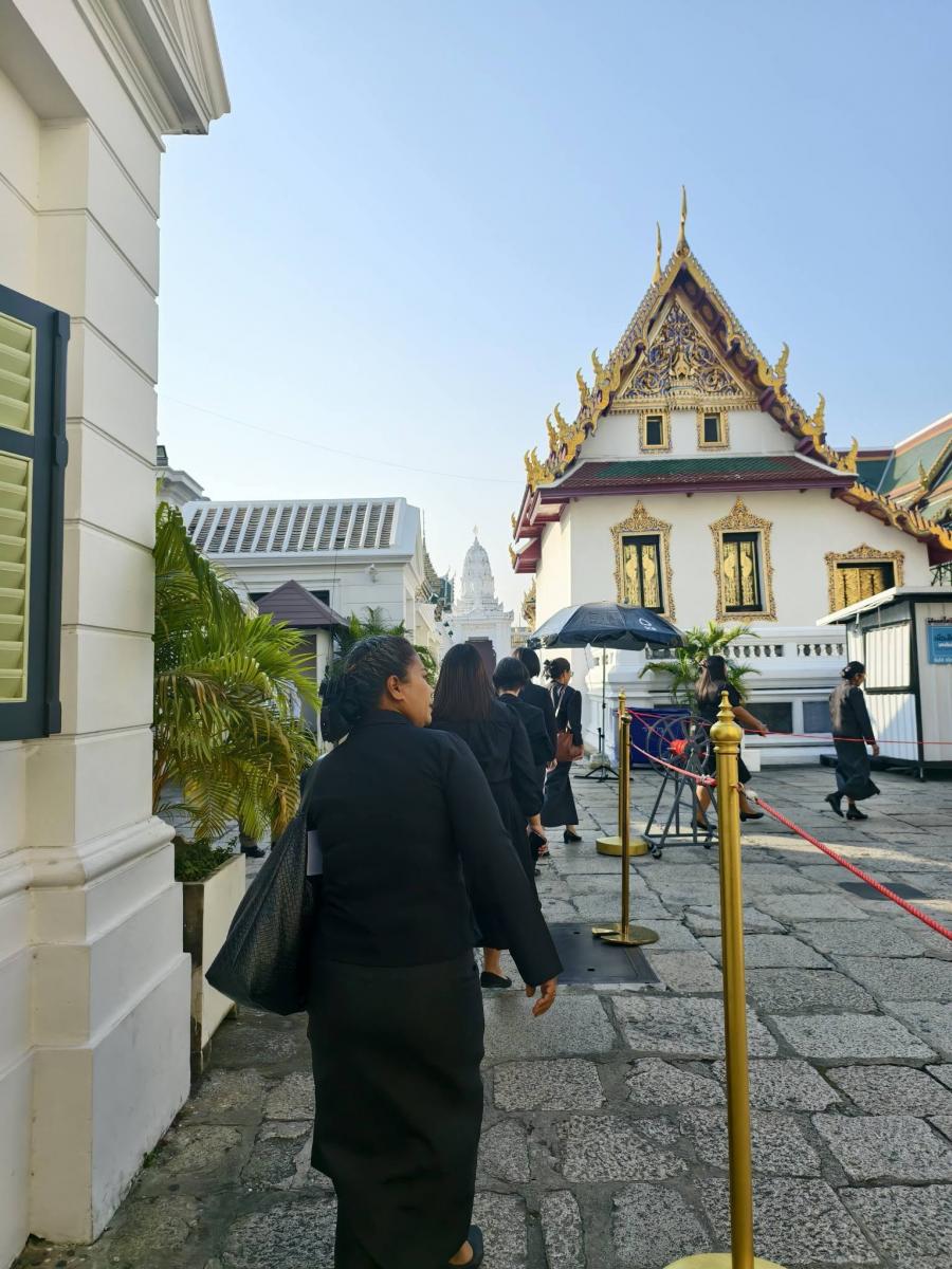 วันอังคาร ที่ 13 มกราคม 2569 นางสุนัน แสนสม รองนายกเทศมนตรีตำบลน้ำตกไทรโยคน้อย พร้อมด้วยนางสาวกัลยา ตึกดี รองประธานสภาเทศบาล สมาชิกสภาเทศบาล ข้าราชการ เจ้าหน้าที่ และประชาชนชาวเทศบาลตำบลน้ำตกไทรโยคน้อย เดินทางเข้ากราบถวายบังคมพระบรมศพ สมเด็จพระนางเจ้าสิริกิติ์ พระบรมราชินีนาถ พระบรมราชชนนีพันปีหลวง ณ พระที่นั่งดุสิตมหาปราสาท ด้วยสำนึกในพระมหากรุณาธิคุณอันหาที่สุดมิได้
