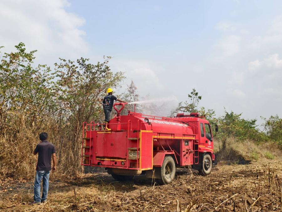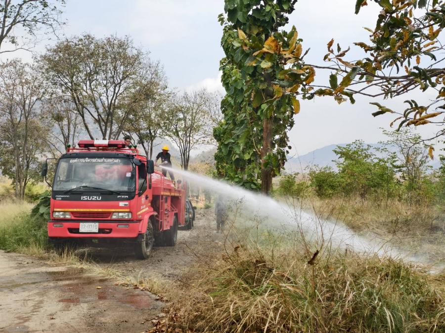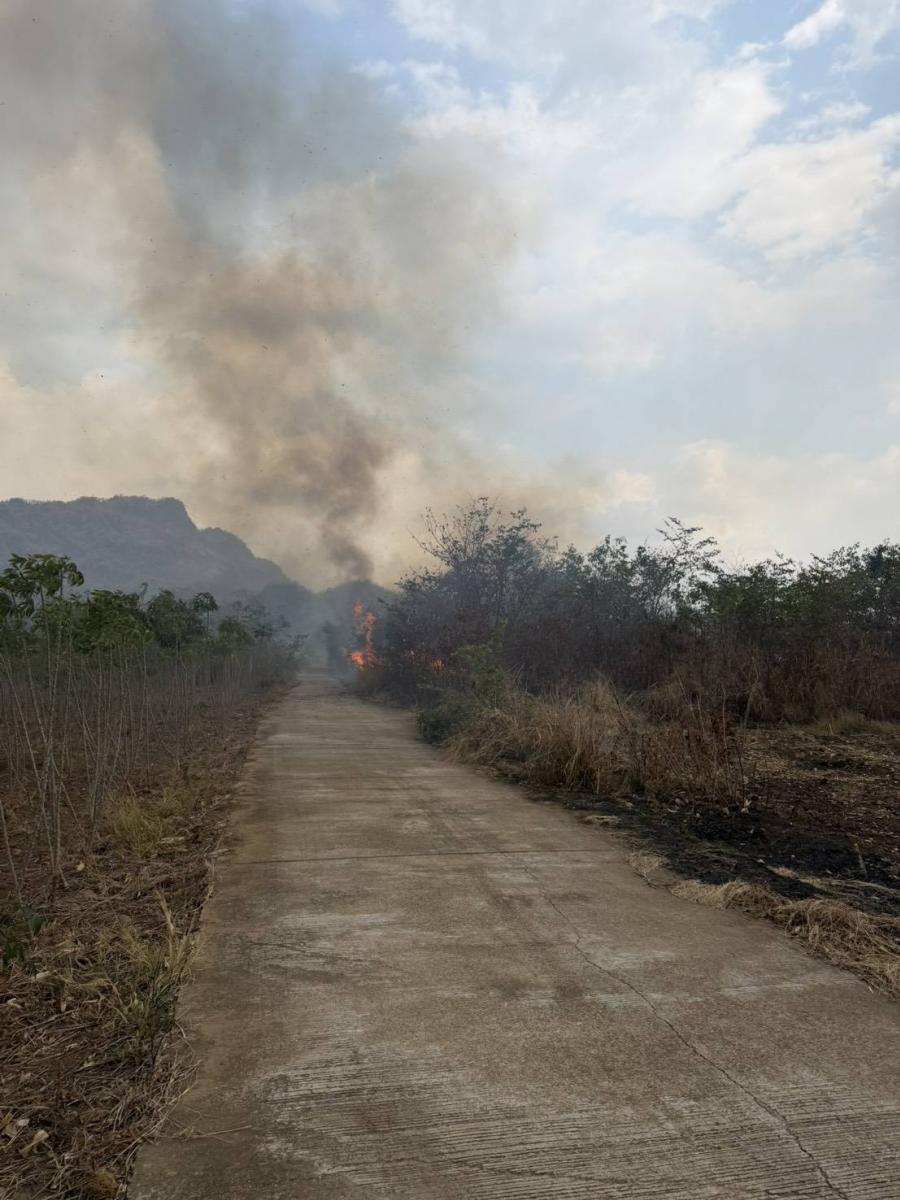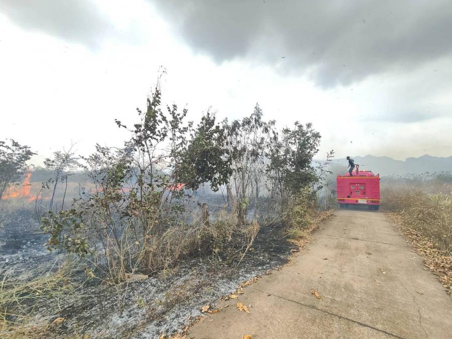 วันที่ 9 กุมภาพันธ์ 2569 เวลา 13.00 น. เจ้าหน้าที่งานป้องกันและบรรเทาสาธารณภัย เทศบาลตำบลน้ำตกไทรโยคน้อย ได้รับแจ้งเหตุเพลิงไหม้หญ้าเป็นวงกว้าง (พิกัดบริเวณถนนผึ้งหวาน - หนองโสน หลังไร่โดม ) ส่งผลให้เกิดกลุ่มควันดำพวยพุ่งปกคลุมท้องฟ้า เกรงว่าจะลุกลามเข้าพื้นที่ไร่ของประชาชน จึงได้เข้าระงับเหตุ แต่ไฟได้ลุกไหม้อย่างรุนแรง ประกอบกับอากาศร้อนและมีลมแรง จึงได้ประสานรถดับเพลิงจากองค์การบริหารส่วนตำบลท่าเสา ช่วยเข้าสกัดบริเวณดังกล่าว ใช้เวลาเกือบชั่วโมง เพลิงจึงได้สงบลง