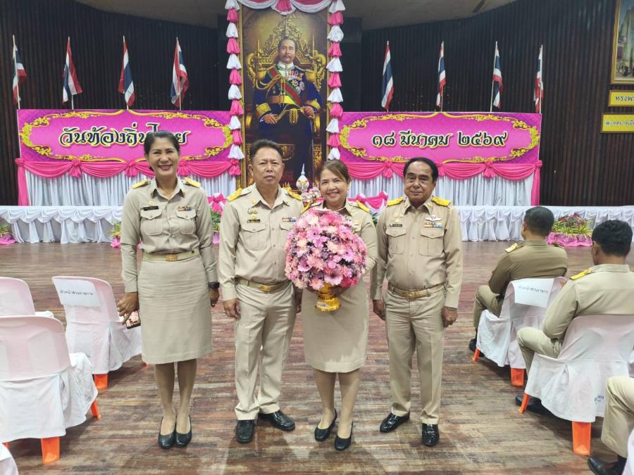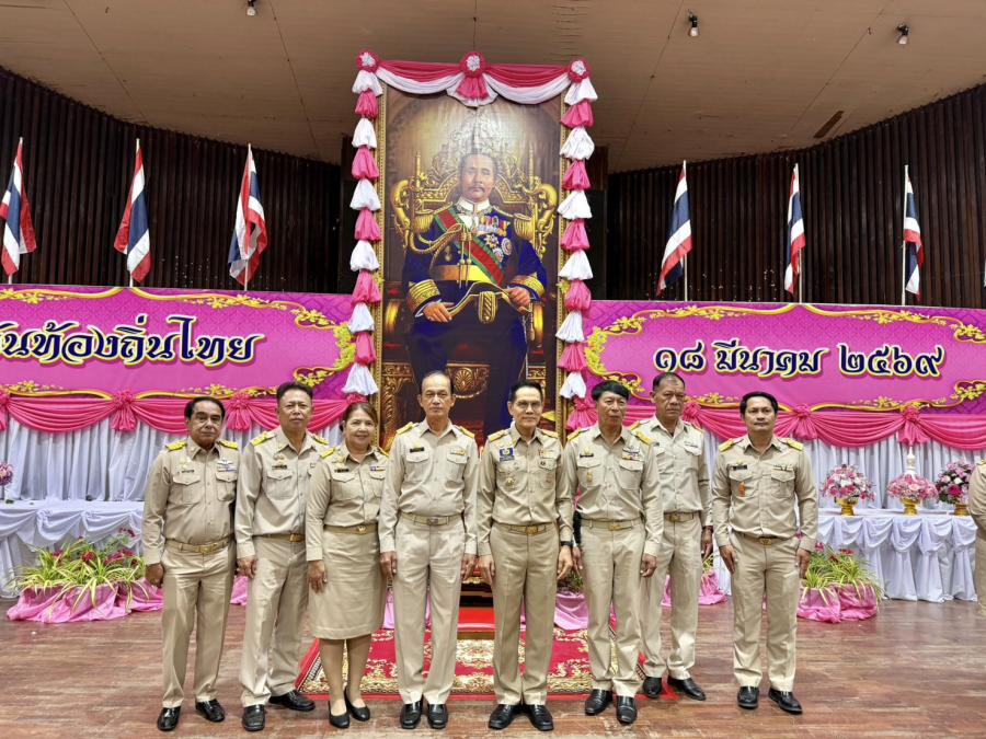ดาบตำรวจรักประสงค์ แสนสม นายกเทศมนตรีตำบลน้ำตกไทรโยคน้อย มอบหมายให้ นางสุนัน แสนสม รองนายกเทศมนตรีตำบลน้ำตกไทรโยคน้อย พร้อมด้วย นายพลเดช ณ พัทลุง เลขานุการนายก นายสุรชัย ผลวิชา ประธานสภาเทศบาล ร่วมพิธีถวายราชสักการะ พระบาทสมเด็จพระจุลจอมเกล้าเจ้าอยู่หัว เนื่องในวันท้องถิ่นไทย ประจำปี 2569 และได้ร่วมวางพานพุ่มดอกไม้สด ถวายราชสักการะ พระบรมสาทิสลักษณ์ฯ รัชกาลที่ 5 โดยมีนายฑรัท เหลืองสอาด รองผู้ว่าราชการจังหวัดกาญจนบุรี เป็นประธานในพิธี