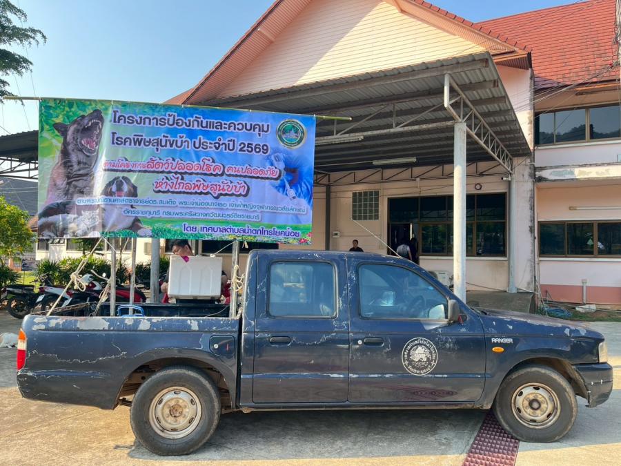 วันที่ 18-20 มีนาคม 2569 งานสาธารณสุข เทศบาลตำบลน้ำตกไทรโยคน้อย ออกหน่วยเคลื่อนที่ให้บริการฉีดวัคซีนป้องกันโรคพิษสุนัขบ้า ตามพระปณิธานศาสตราจารย์ ดร.สมเด็จพระเจ้าน้องนางเธอเจ้าฟ้าจุฬาภรณ์ วลัยลักษณ์ อัครราชกุมารี ประจำปีงบประมาณ 2569 โดยมีวัตถุประสงค์เพื่อดำเนินการเฝ้าระวัง ป้องกัน และควบคุมโรคพิษสุนัขบ้า