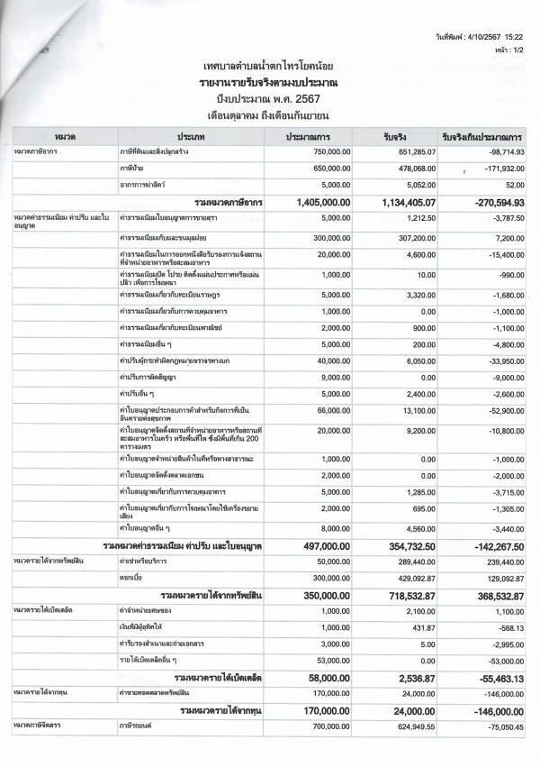 รายงานผลการปฏิบัติงานการจัดเก็บรายได้ ประจำปีงบประมาณ พ.ศ. 2567