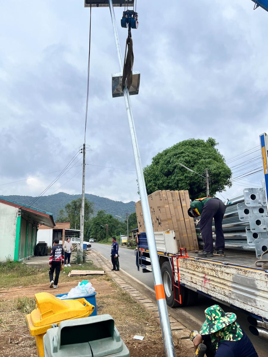 ดาบตำรวจรักประสงค์ แสนสม นายกเทศมนตรีตำบลน้ำตกไทรโยคน้อย มอบหมายให้ นางสุนัน แสนสม รองนายกเทศมนตรีตำบลน้ำตกไทรโยคน้อย และคณะผู้บริหาร สมาชิกสภาเทศบาลฯ พร้อมทั้งเจ้าหน้าที่ที่เกี่ยวข้อง ลงพื้นที่ดูการดำเนินการ ติดตั้งชุดเสาไฟถนน โคมไฟแอลอีดีพลังงานแสงอาทิตย์ แบบประกอบในชุดเดียวกัน (Integrated Solar Cell LED streetlight With Pole) ณ บริเวณซอยเทศบาล 3