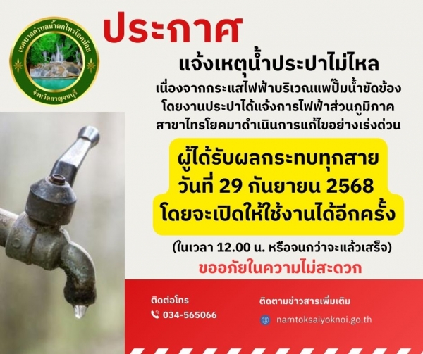 แจ้งเหตุน้ำประปาไม่ไหล