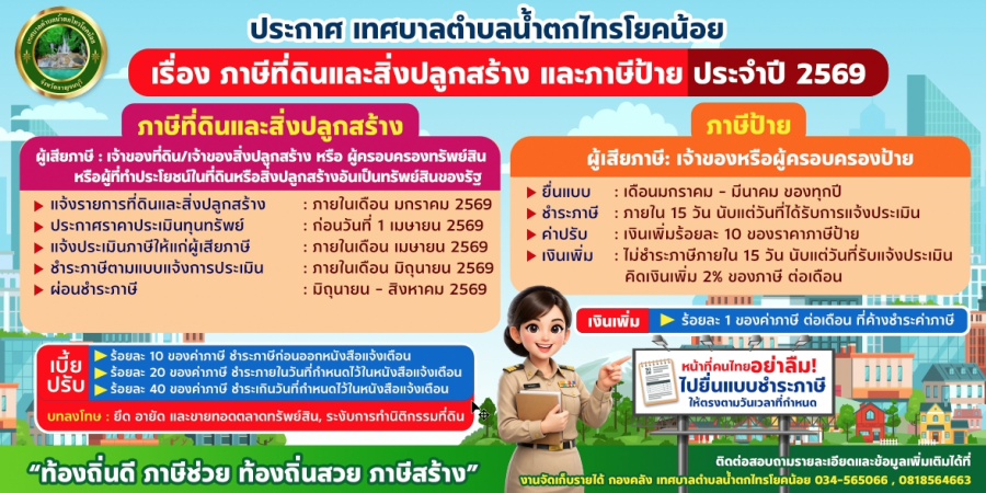 เรื่องภาษีที่ดินและสิ่งปลูกสร้าง และภาษีป้าย ประจำปี 2569